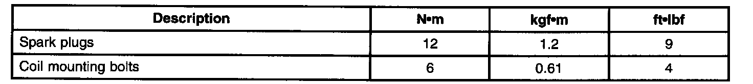 IGNITION TORQUE SPECIFICATIONS
