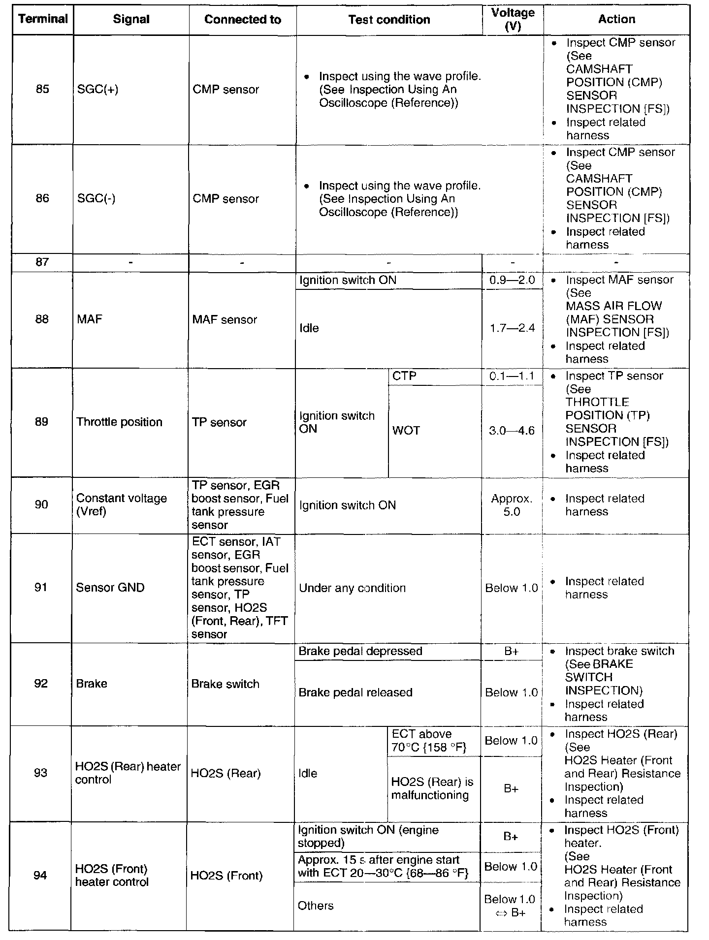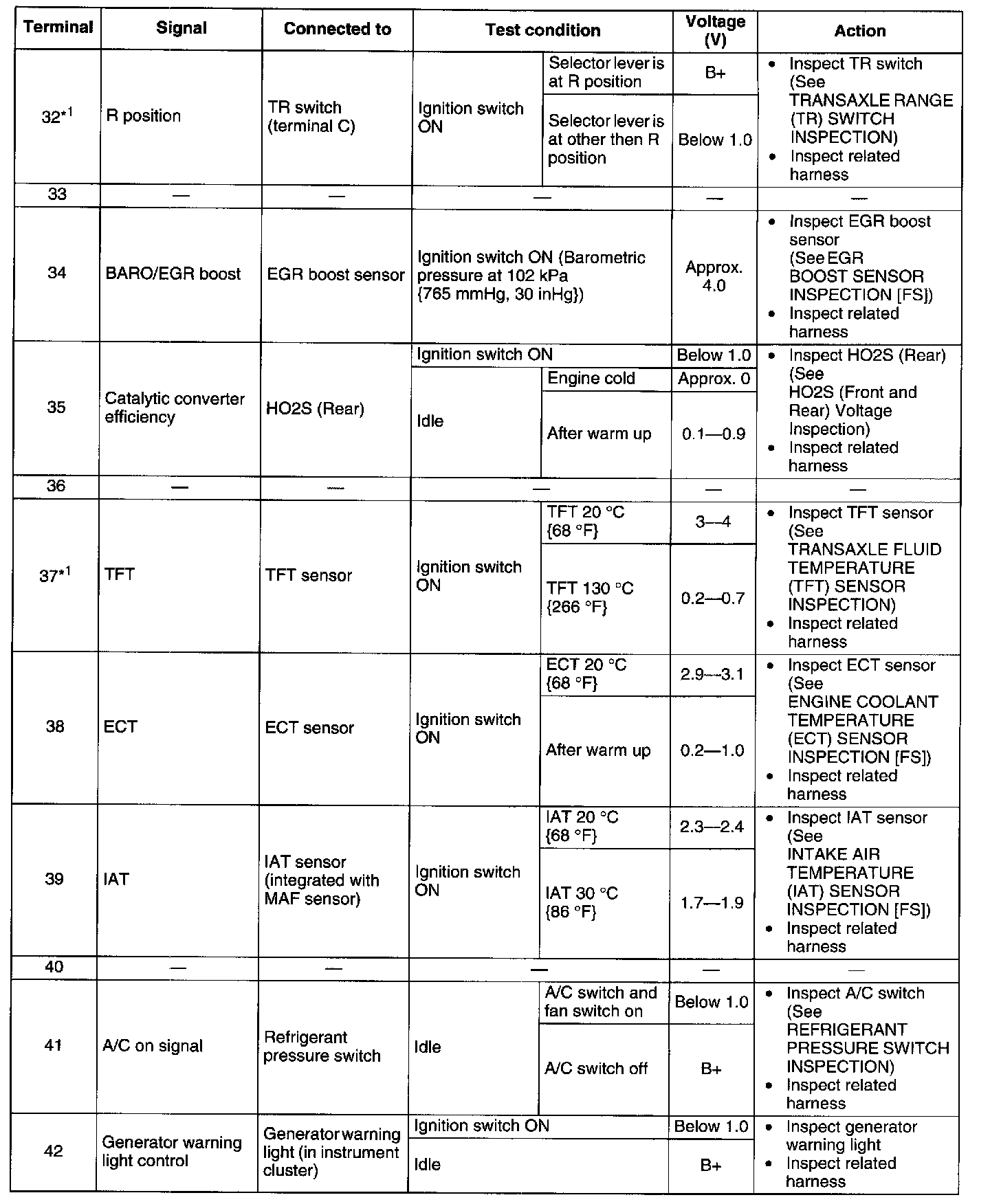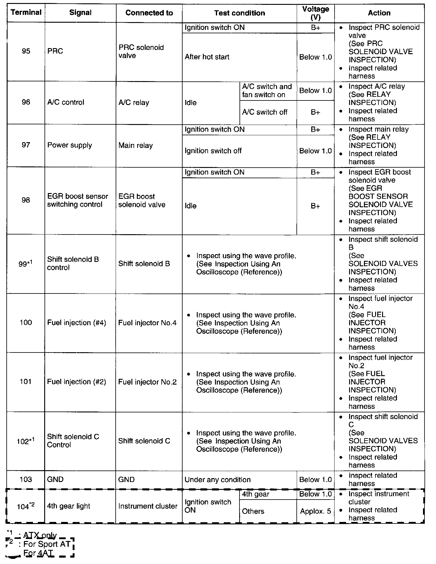 PCM INSPECTIONCAUTION: The PCM terminal voltages vary with change in measuring conditions and vehicle conditions. Always carry out a total inspection of the Input systems, output systems, and PCM to determine the cause of trouble. Otherwise, a wrong diagnosis will be made.