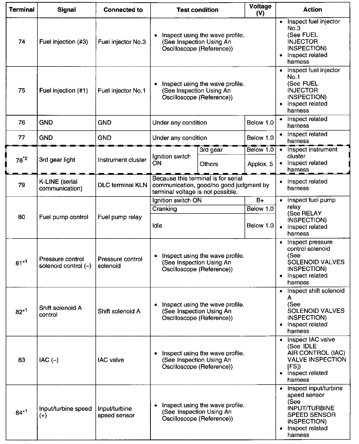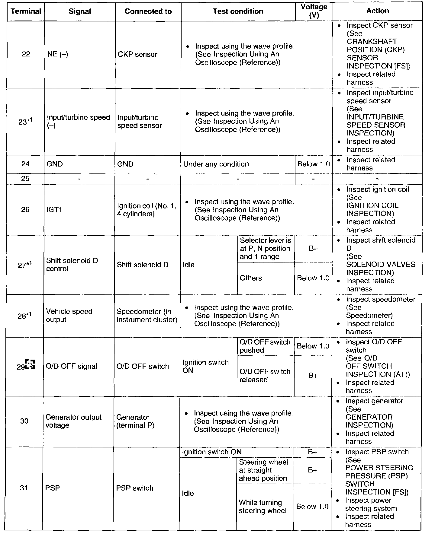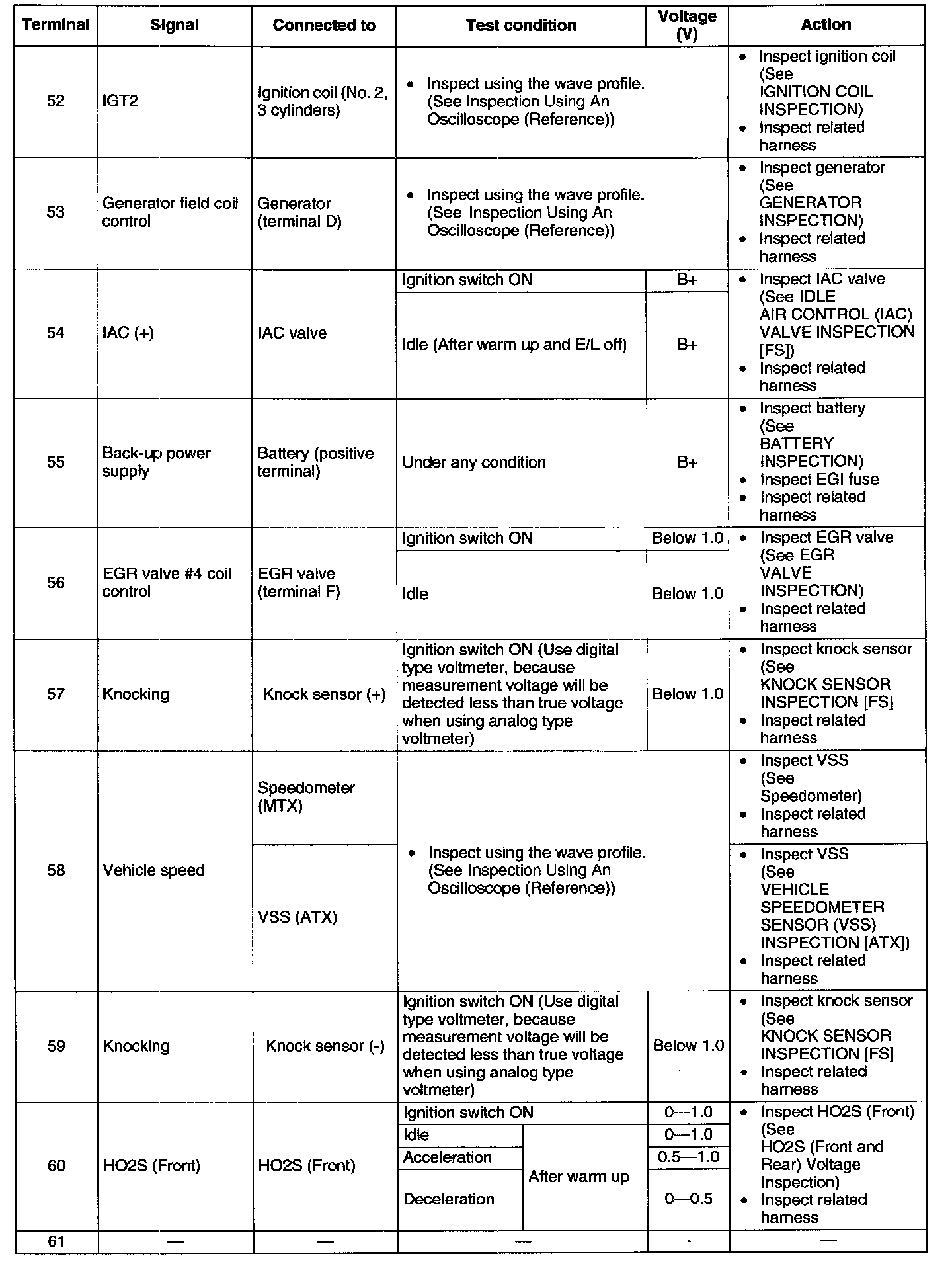 PCM INSPECTIONCAUTION: The PCM terminal voltages vary with change in measuring conditions and vehicle conditions. Always carry out a total inspection of the Input systems, output systems, and PCM to determine the cause of trouble. Otherwise, a wrong diagnosis will be made.