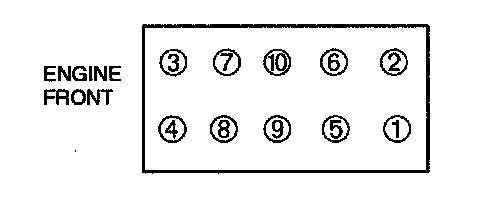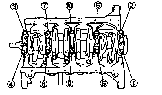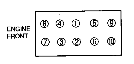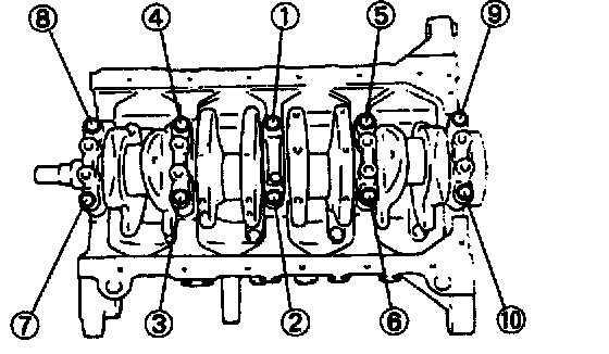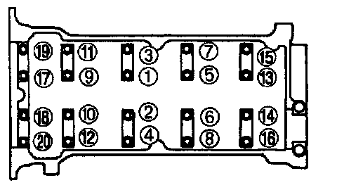 Tighten the camshaft cap bolts a few turns in the order shown.
