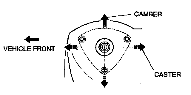 ^ Moving the shock absorber and coil spring to the right or left side of the vehicle allows camber adjustment and forward and backward of the vehicle allows caster adjustment.