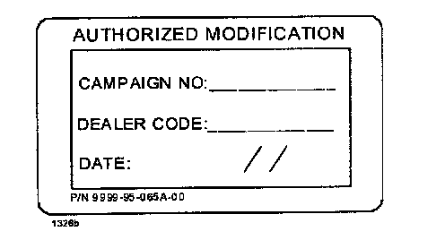 5. Place an "Authorized Modification" label (P/N 9999-95-AMDC-97) with the new calibration information on the drivers side "A" pillar, near the door hinges.