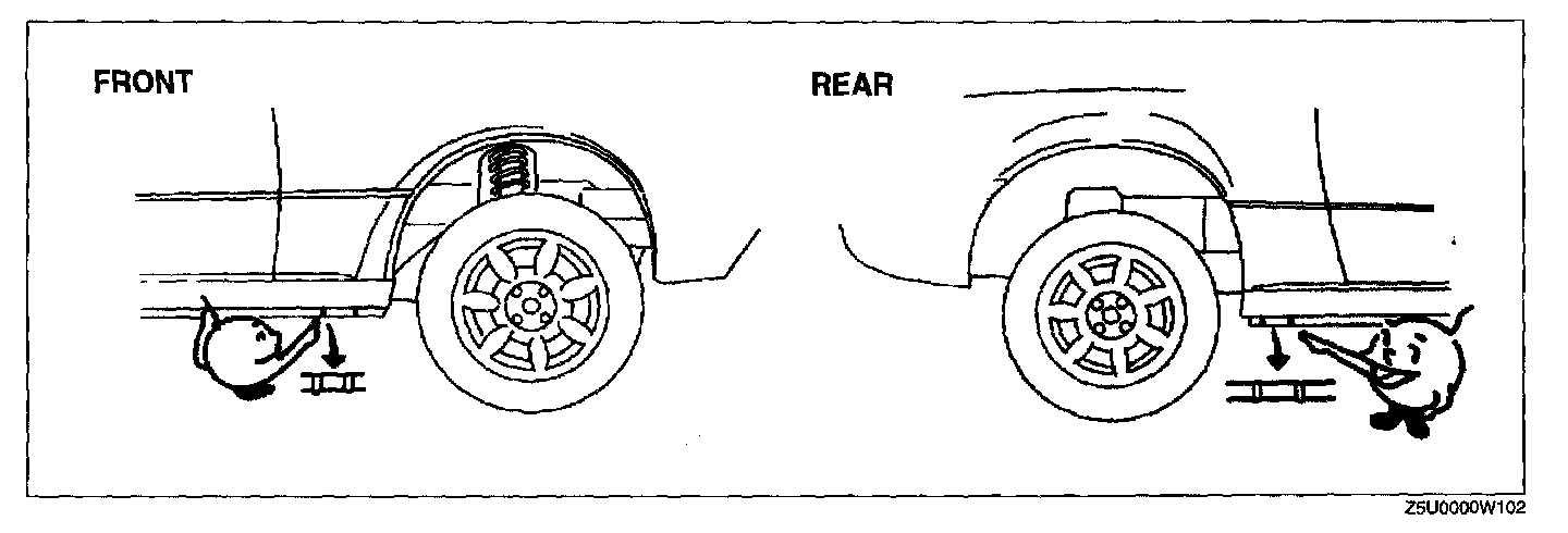JACKING POSITIONSWarning: Improperly jacking a vehicle is dangerous. The vehicle can slip off the jack and cause serious injury. Use only the correct front and rear jacking positions and block the wheels.