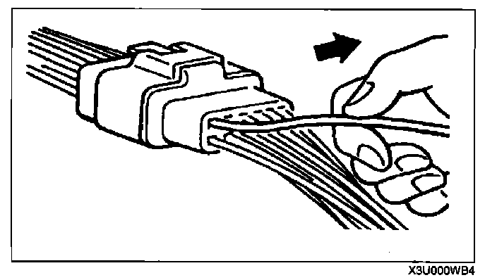 - Insert a thin piece of metal from the terminal side of the connector and with the terminal locking tab pressed down, pull the terminal out from the connector.