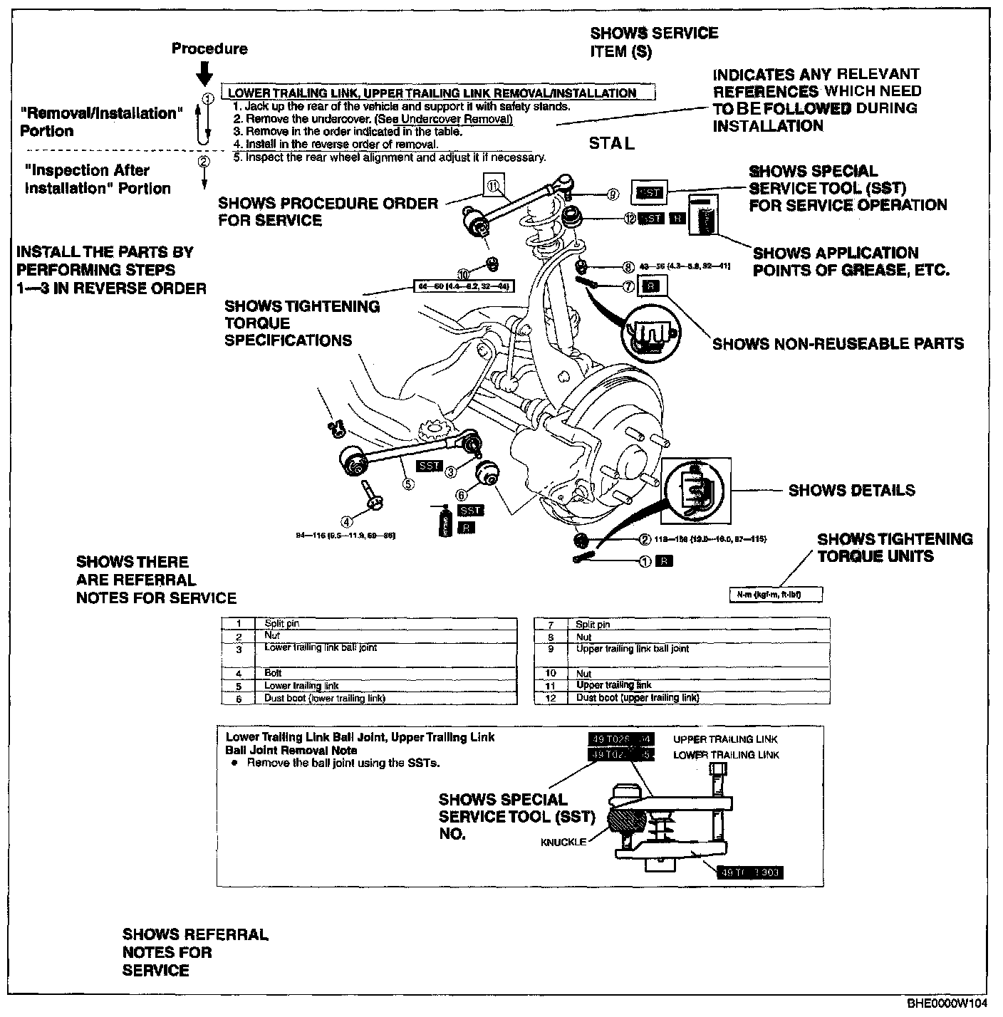 2. Expendable parts, tightening torques, and symbols for oil, grease, and sealant are shown in the overview illustration. In addition, symbols indicating parts requiring the use of special service tools or equivalent are also shown.