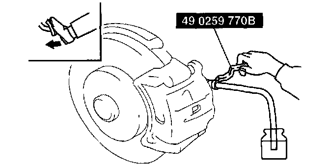1. Remove the bleeder cap and attach a vinyl tube to the bleeder screw.