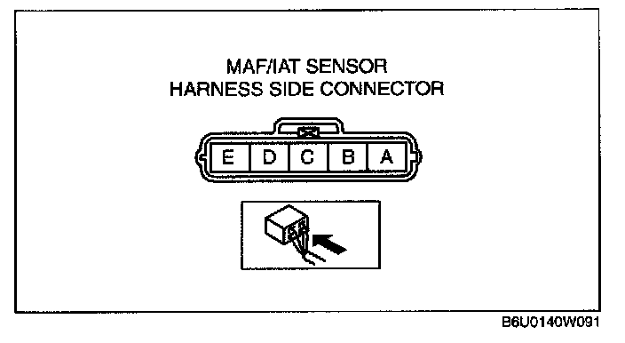 - MAF sensor terminal C (harness-side) and PCM terminal 1 P (harness-side)