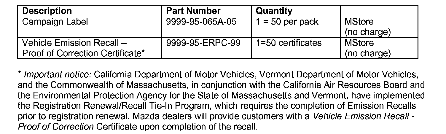 Use MStore to order additional Campaign labels (1=50 per pack) and Vehicle Emission Recall - Proof of Correction certificates (1-50 certificates).