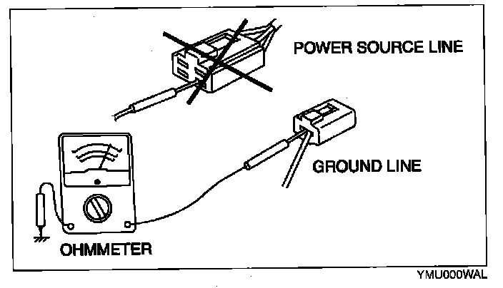 CAUTION: Do not connect the ohmmeter to any circuit where voltage is applied. This will damage the ohmmeter.