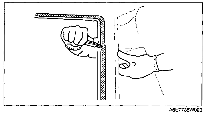 NOTE: For the areas of the sealant that are difficult to cut, use the SST (piano wire) and follow the procedure under "Reusing Windshield."