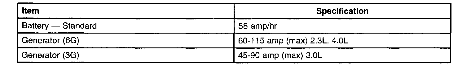 CHARGING SYSTEM SPECIFICATIONS