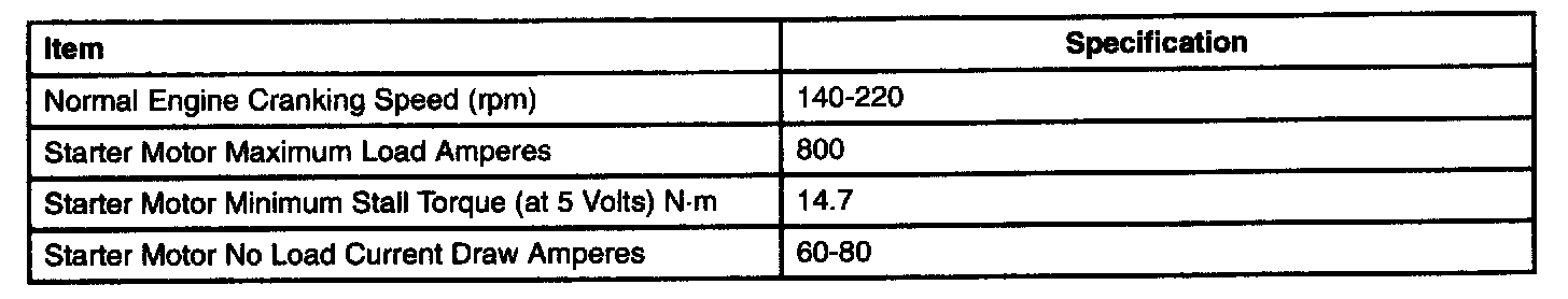STARTING SYSTEM SPECIFICATIONS