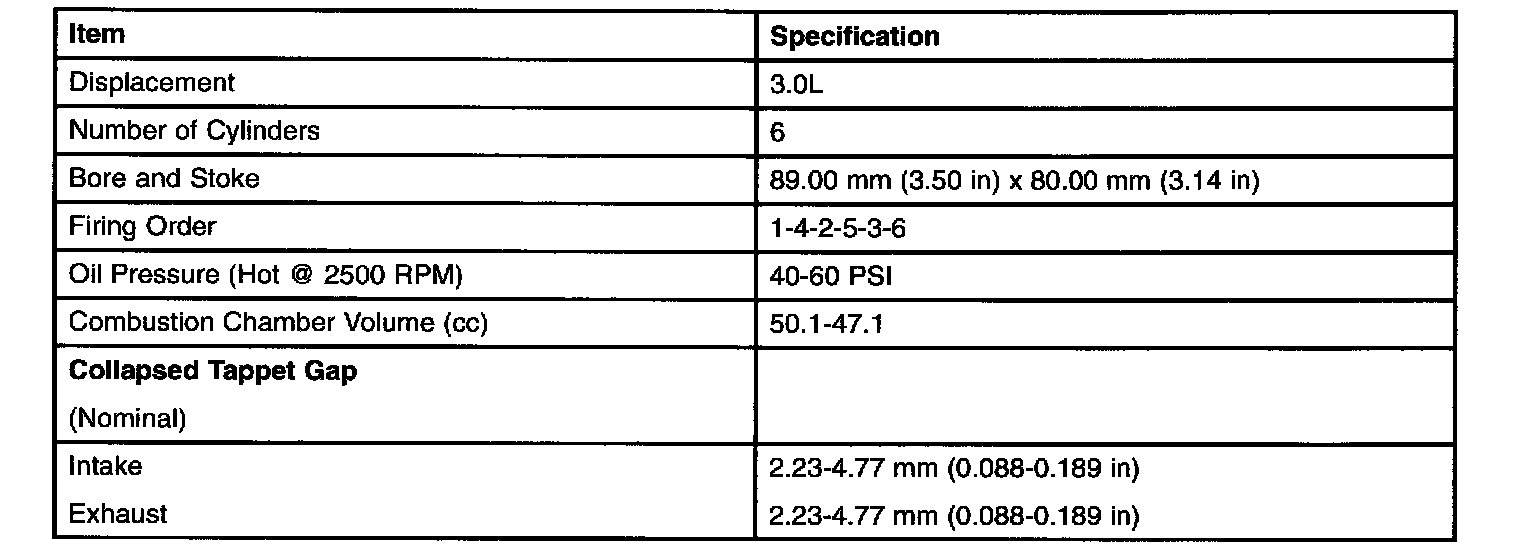 ENGINE SPECIFICATIONS-3.0L