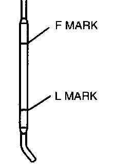 5. Remove the dipstick and verify that the oil level is between the F and L marks on the dipstick.
