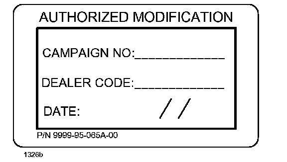 7. Complete the blue "Authorized Modification" label (9999-95-065A-00) with the Campaign number "MSP04" written on the sticker and affix it to the vehicle's hood.