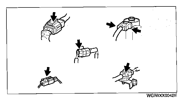 - inspect the terminals of waterproof connectors from the connector side since they cannot be accessed from the wiring harness side.