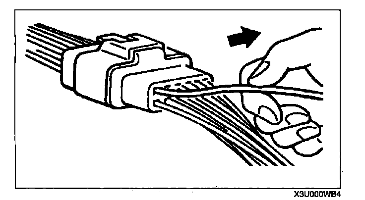 - Insert a thin piece of metal from the terminal side of the connector and with the terminal locking tab pressed down, pull the terminal out from the connector.