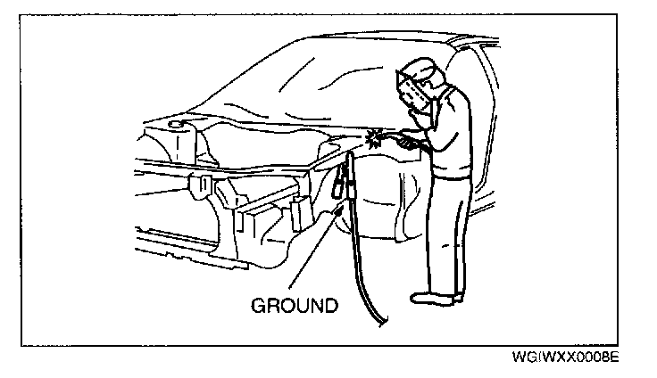 A vehicle has various electrical parts. To protect the parts from excessive current generated when welding, be sure to perform the following procedure.