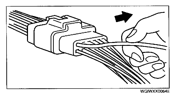 - Insert a thin piece of metal from the terminal side of the connector and with the terminal locking tab pressed down, pull the terminal out from the connector.