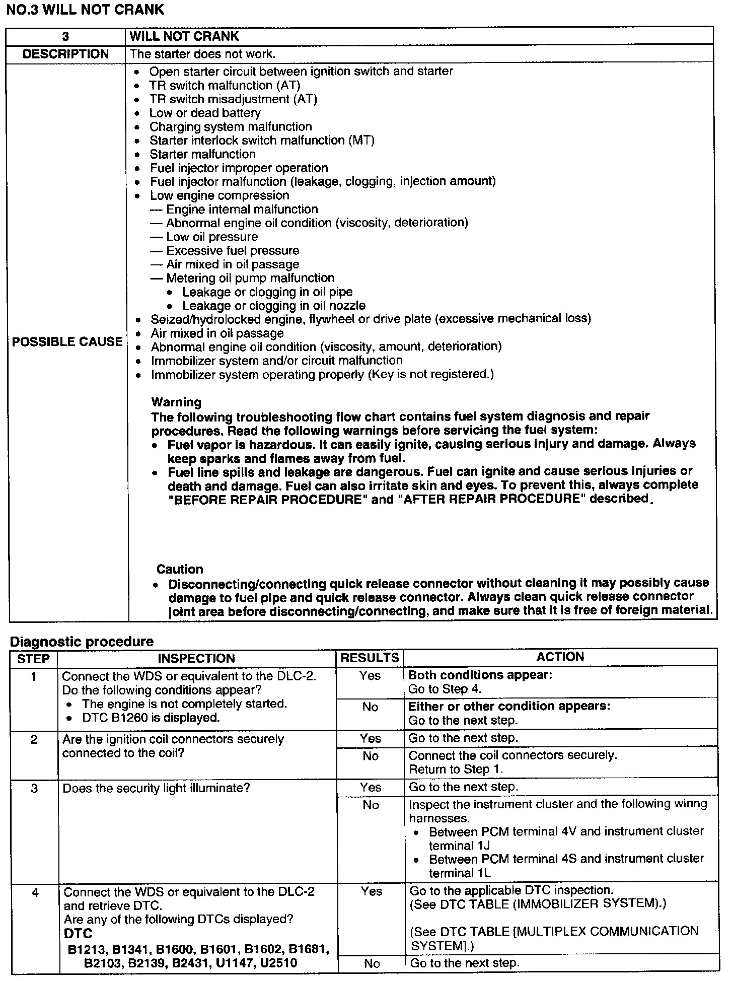 Starting System: Testing and Inspection