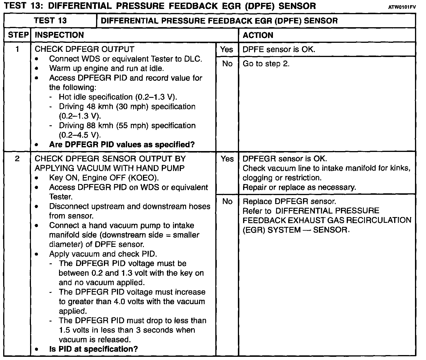 Test 13: Differential Pressure Feedback EGR (DPFE) Sensor