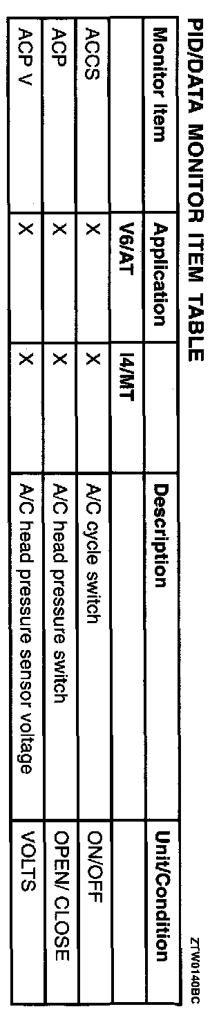 PID/Data Monitor Item Table