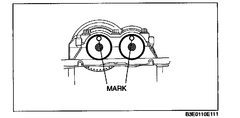 5. With the balancer unit marks at the exact top center, assemble the unit to the cylinder block.