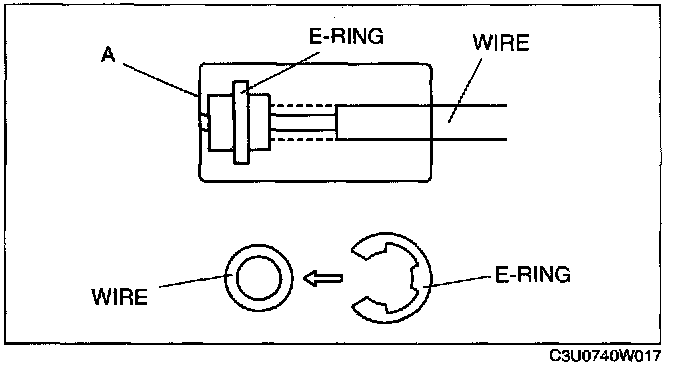 - If the E-ring has been lost the one at the wire end can be removed and reused.