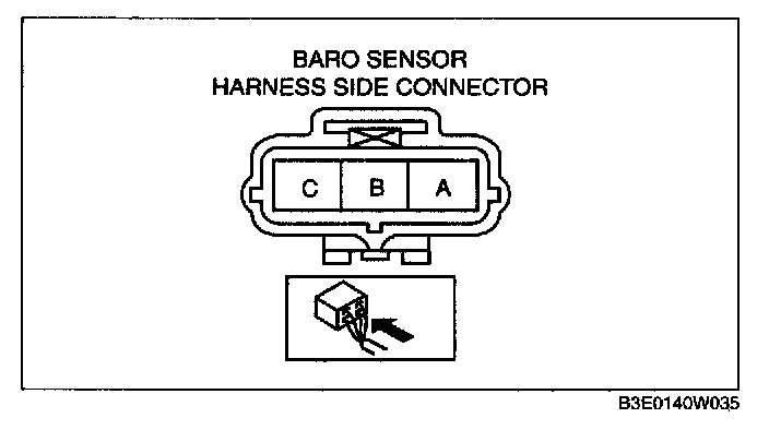 BAROMETRIC PRESSURE (BARO) SENSOR INSPECTIONNOTE: Before performing the following inspection, make sure to follow the procedure as indicated in the troubleshooting flowchart.