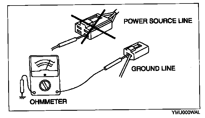 CAUTION: Do not connect the ohmmeter to any circuit where voltage is applied. This will damage the ohmmeter.