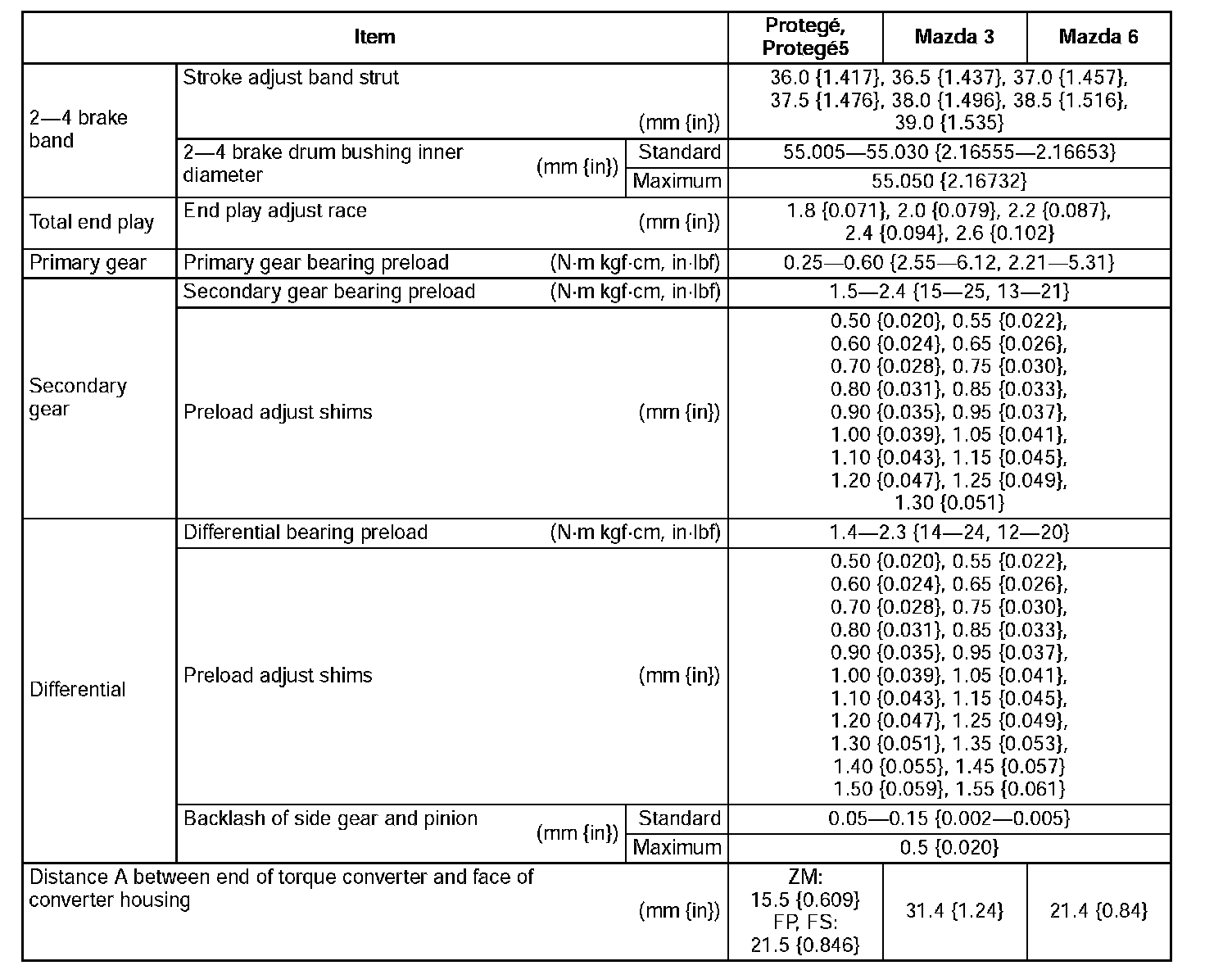 Transmission/Transaxle Technical Data (Part 4):