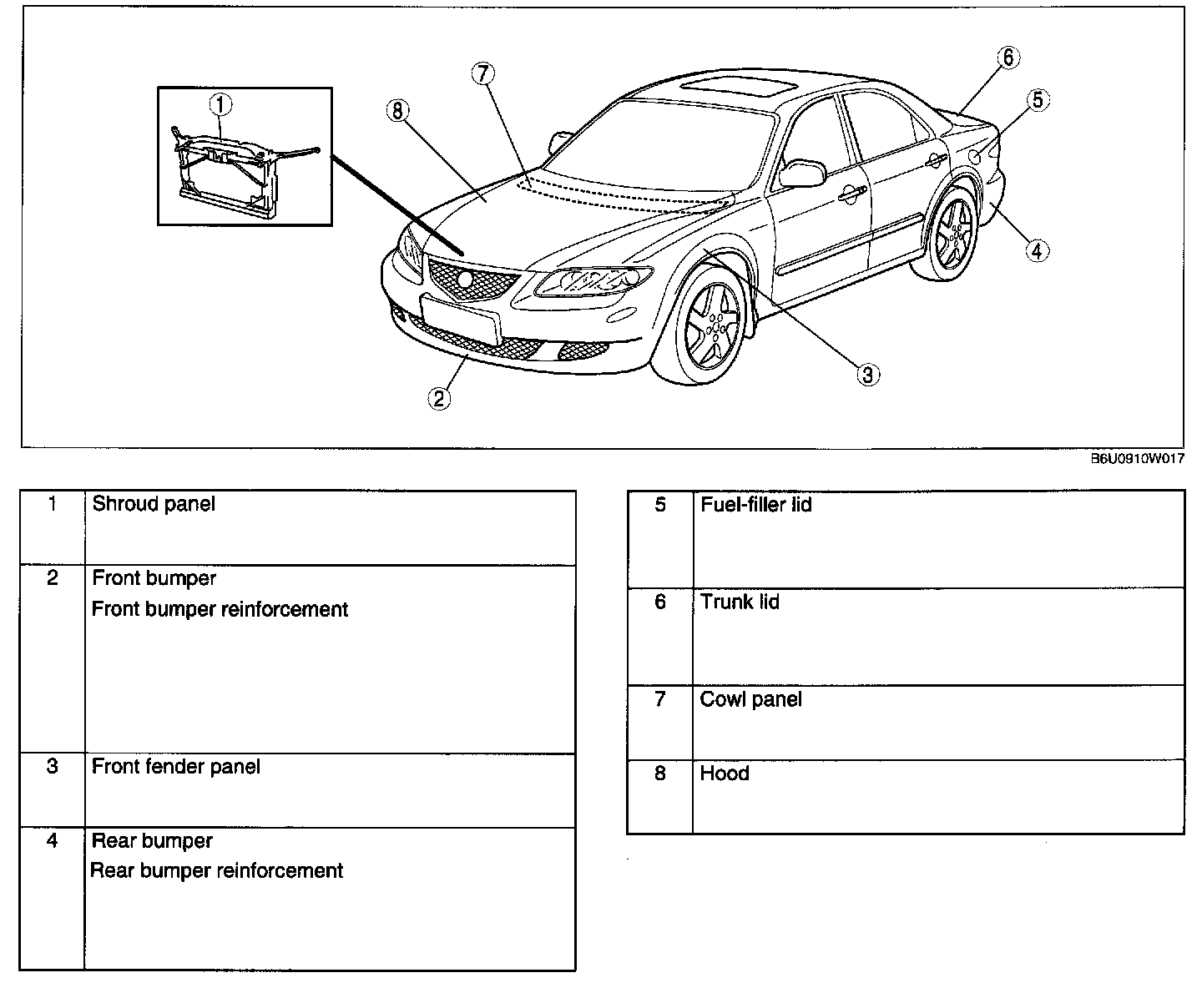 Body Panels Location Index: