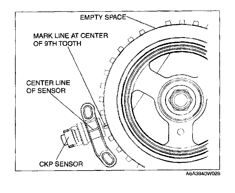 3. Align the center line of the crankshaft position sensor and the line drawn in Step 2, then install the sensor.