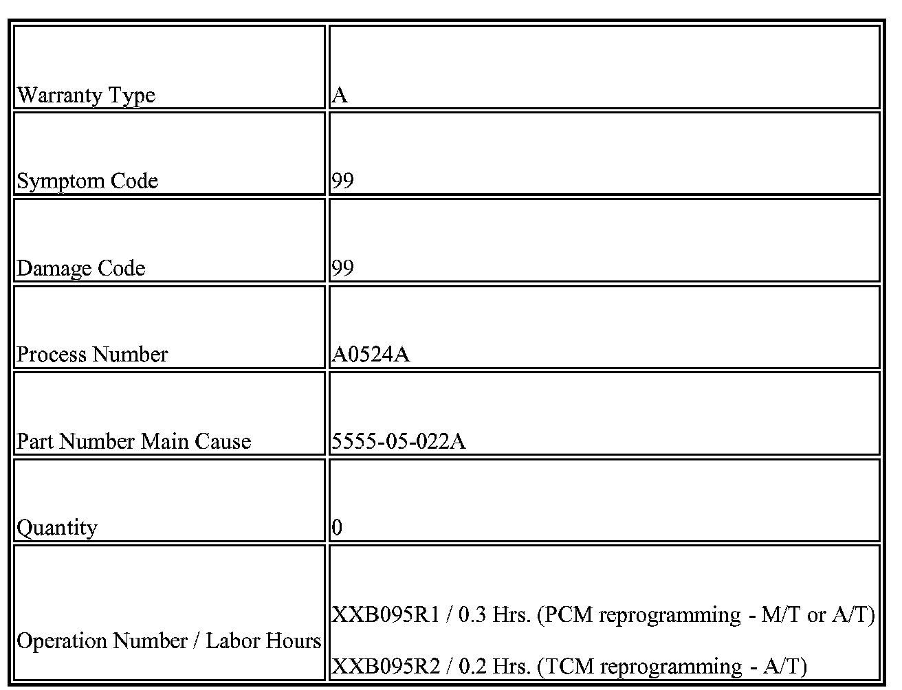 ^ If WDS indicates the PCM and TCM are already at the latest calibration level (refer to "Calibration Information" table), proceed to Step 5 under "PCM/TCM PROGRAMMING" and complete an "Authorized Modifications" label. This label will inform technicians of the PCM/TCM calibration change if future repairs are necessary.