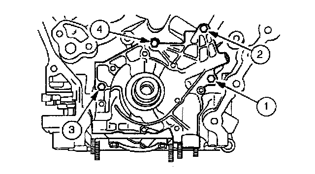 Tighten the oil pump bolts in two steps in the order indicated in the figure.