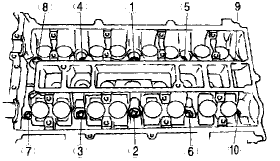 Tighten the cylinder head bolts in the order shown following 5 steps.