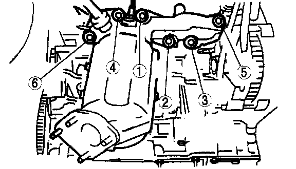 Tighten the oil pump bolts in the order shown.