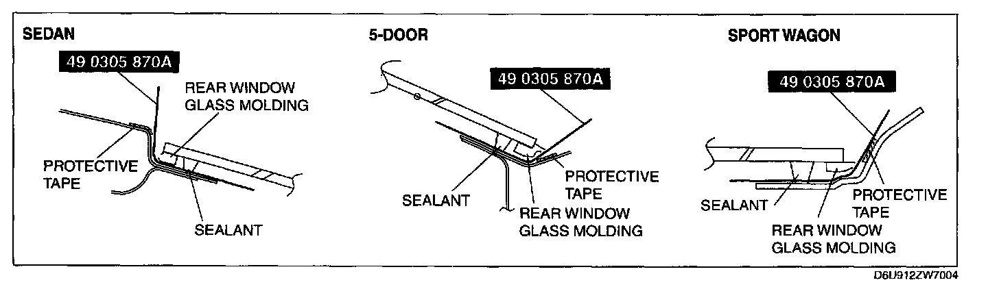 REAR WINDOW GLASS REMOVAL1. For the Sedan, remove the following parts: