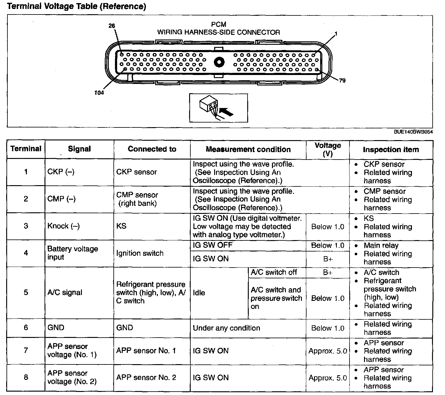 Terminal Voltage Table (Reference) - Terminals (1 - 8):
