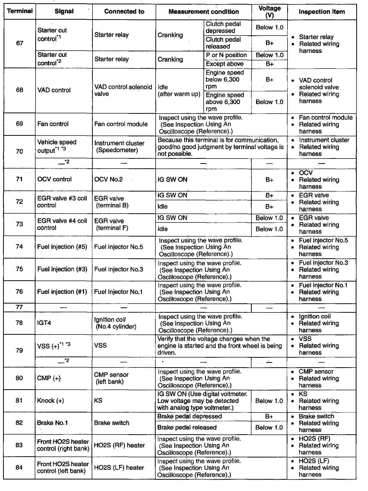 Terminal Voltage Table (Reference) - Terminals (67 - 84):