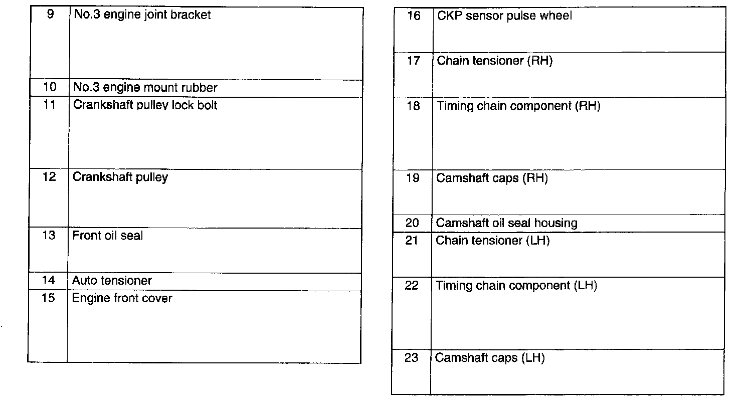 Remove the timing chain (RH) in the following order.