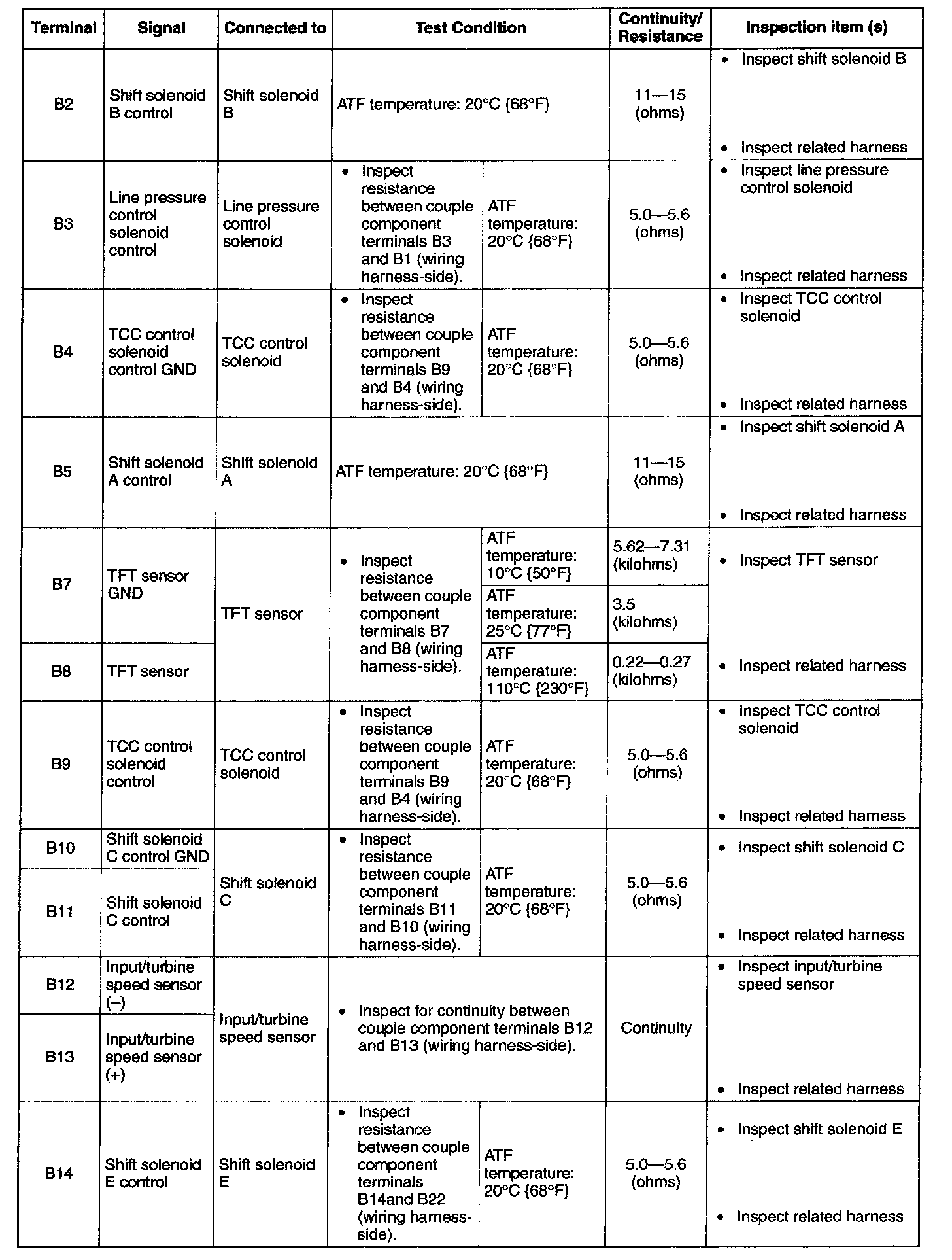 4. Verify that continuity or resistance at terminal is as indicated in the terminal continuity/resistance table.