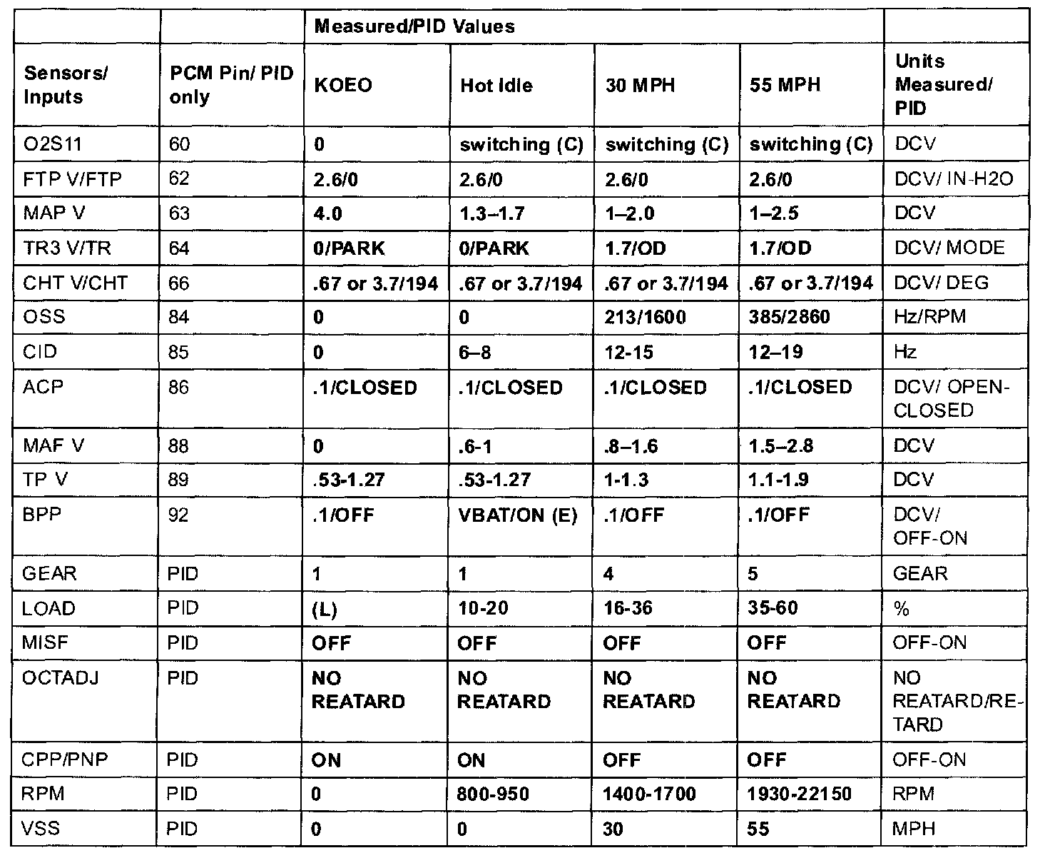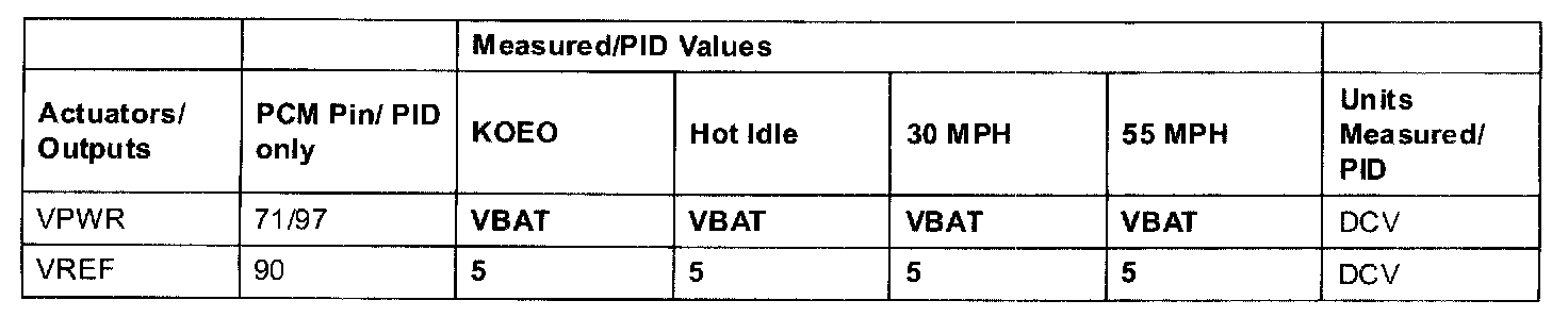 2.3L (M/T) Terminal Voltage (Reference)NOTE: All values shown may vary 20% depending on operating conditions and other factors. RPM values are axle and tire dependent.