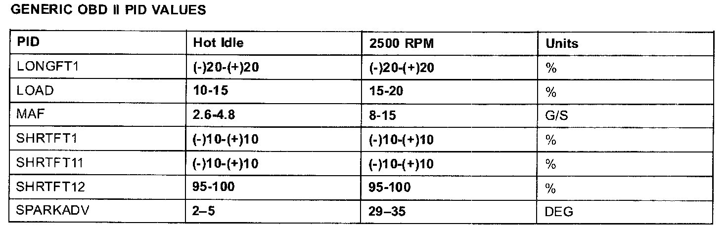 GENERIC OBD II PID VALUES