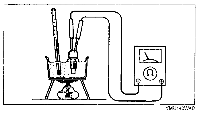 3. Place the ECT sensor in water with a thermometer, and heat the water gradually.