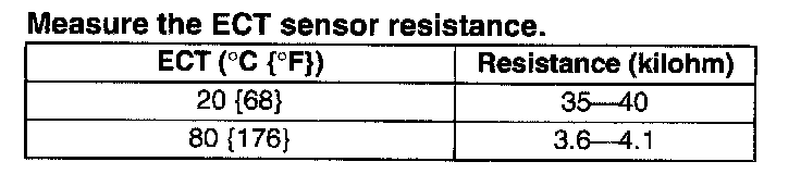 - If not as specified, replace the ECT sensor.