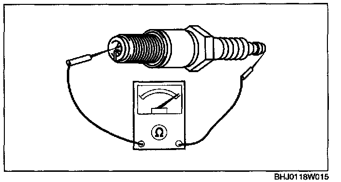 1. Measure the resistance of the spark plug using a tester as shown in the figure.