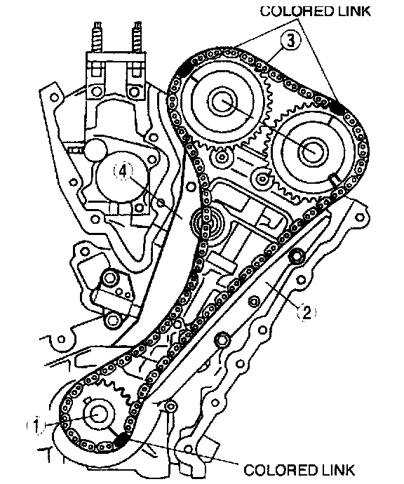 If timing marks in the timing chains are not evident, use a permanent-type marker to mark the crankshaft and camshaft timing marks on the timing chain.