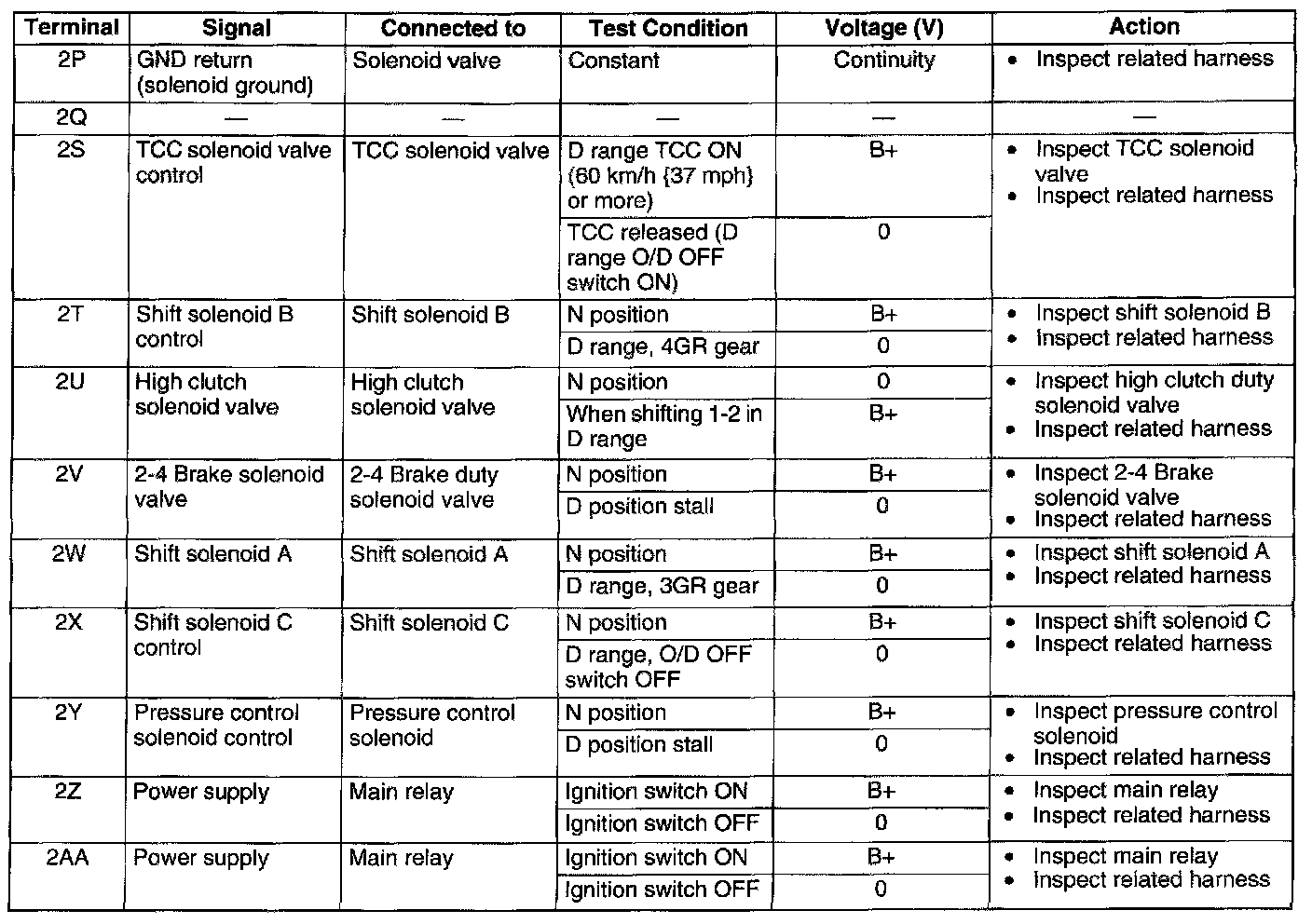 TCM INSPECTIONTerminal Voltage Table (Reference)