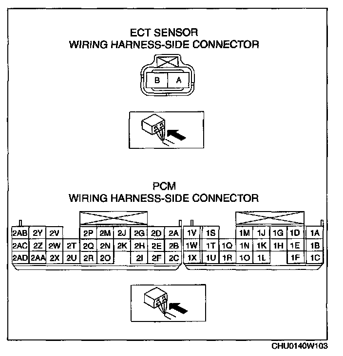 ENGINE COOLANT TEMPERATURE (ECT) SENSOR INSPECTIONNOTE: Before performing the following inspection, make sure to follow the troubleshooting flowchart. (See FOREWORD.) Flow of Diagnosis